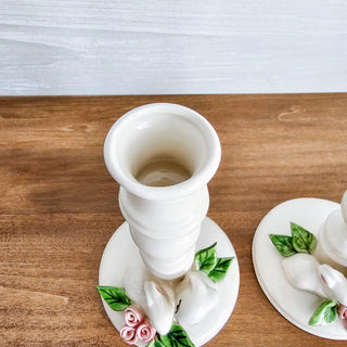 Vintage Mud Pie Rose and Bunny Rabbit Candle Holders Set of Two