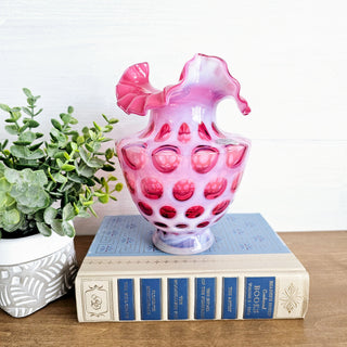 Vintage Fenton Cupped Footed Bowl Dish Silvertone Pattern Floral Depression Glass Clear